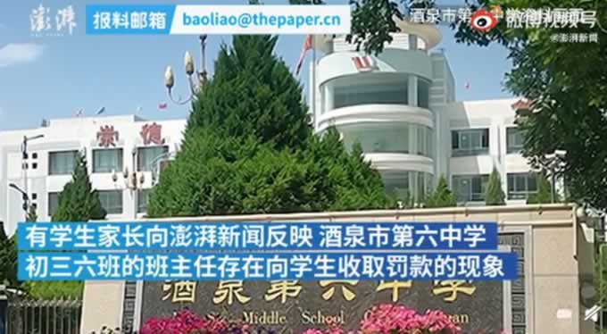 据新闻晨报4月4日消息,罚款的老师是酒泉市第六中学的一名班主任丁某,她在微信群中规定学生迟到、没有完成作业、考试退步等等都会被罚款,罚款的金额从10元-500元不等,已经持续了将近两年的时间,有家长表示一学期就罚了七八万块钱。