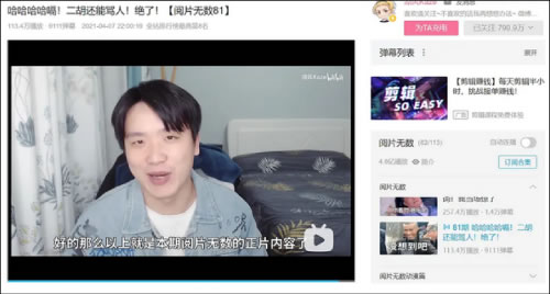 4月7日,B站百大UP主“凉风Kaze”上传了一部名为《哈哈哈哈嗝!二胡还能骂人!绝了!》的视频,其中有一个片段是这样的: