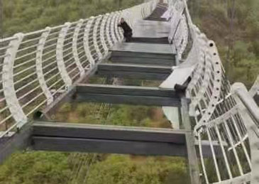 吉林一玻璃栈道玻璃掉落 工作人员指挥受困者自行爬回