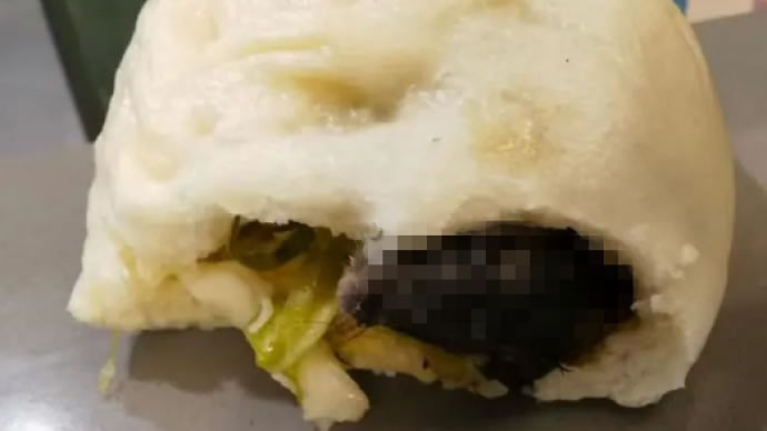 视频中,孙女士的丈夫,咬了两口包子后,惊呼了一声,并将包子丢掉,喊道包子里有老鼠。而在孙女士提供的照片中,看到一块被咬过的包子。包子是水滴状的,在底部露出一只老鼠的脑袋和一些包菜和胡萝卜。孙女士说,30日早上发现包子有问题后,便让保姆带着包子去店里讨说法。当时有一位女店员说老板不在,要跟老板反映一下。保姆就把包子留在店里。