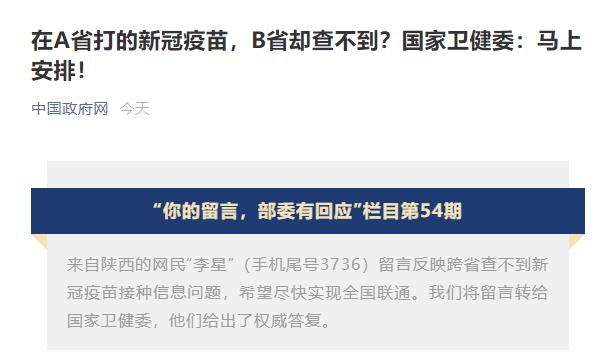 目前疫苗接种,核酸检测等信息还没有全国打通,例如我在山西打的疫苗,在陕西就看不到已经注射的信息。这样会造成很多信息不一致,建议尽快打通,降低管理成本,方便人民出行。