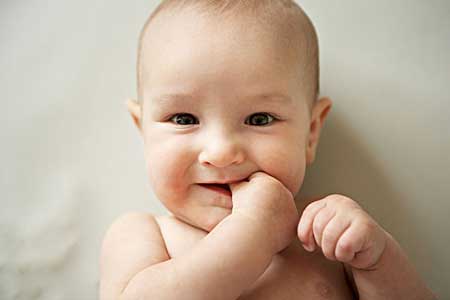 表示兴奋愉快。一般来说,宝宝的笑来得很快,大人常发现四周并没什么变化,宝宝就已经牵动嘴角,笑容骤现了。宝宝笑的时候眼睛有神,两手会同时活泼的晃动,充分散发童真的魅力。这时父母应报以笑脸,用手轻轻地抚摸婴儿的面颊,并在他的额部亲吻一下,给予鼓励。