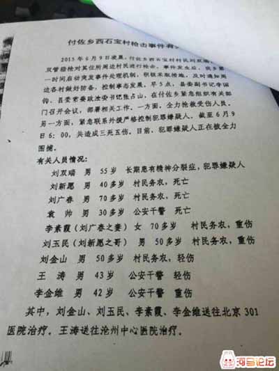 原标题:河北肃宁发生特大枪击案4死5伤 公安局政委牺牲