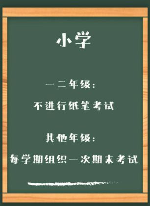 《通知》明确小学一二年级不进行纸笔考试,其他年级由学校每学期组织一次期末考试;初中年级从不同学科实际出发,可适当安排一次期中考试。要合理控制考试难度,严禁超课标超教学进度命题。要合理运用考试结果,学校期中期末考试实行等级评价。要统筹处理好考试、作业、日常评价、质量监测等方面的关系,注重学生的综合素质、学习习惯与学习表现、学习能力与创新精神等方面的综合评价。