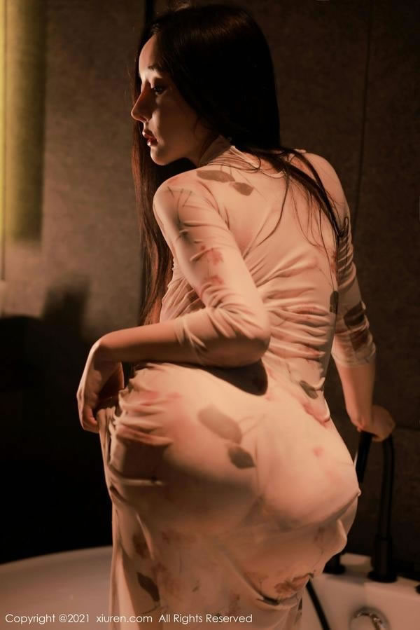 抖娘利世深V白色长裙缕空后背激凸点诱惑
