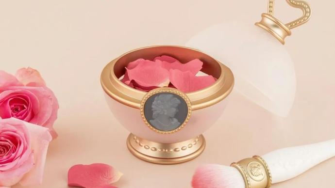 在此之前,多数人对腮红的印象还是一块规规矩矩的饼状。花瓣腮红一出,造型如新鲜欲滴的花瓣般生动柔嫩,连细微的脉络和渐变都做得栩栩如生,被妥帖安放在华丽宫廷风的小盅内,用的时候拿腮红刷蘸一点扫在双颊。