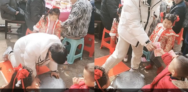 【#18岁男生给3岁舅舅磕头拜年# 小萌娃伸手大气“发红包”逗乐全家】1月30日,安徽宿州一名网友拍下18岁的外甥给3岁的小舅舅磕头拜年的一幕,引发关注。视频中,还有一名4岁的小萌娃也给3岁舅舅拜年,小舅舅伸手大气发出红包,逗乐全家。网友:这辈分实在是太难搞懂了!@海客新闻 #小朋友的压岁钱到底归谁# #回乡见闻#