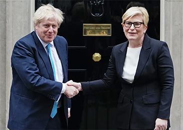 综合英国政府网站及路透社消息,约翰逊在会晤中称,英国支持所有北约盟友,在白俄罗斯移民等所有“我们面对的问题上”都支持立陶宛。两国声称俄罗斯对乌克兰的任何“入侵”行为都将遭致“灾难性的错误”,有必要继续向乌克兰提供实质性的经济和国防支持。