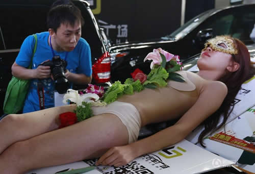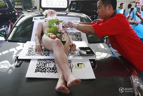 原标题:2015沈阳车展疯玩“人体盛寿司宴”