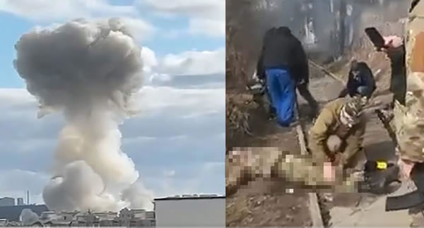 当地时间2月27日,乌克兰基辅地区伊尔平市发生大爆炸,巨大白色蘑菇云冲天而起。伊尔平市市长录制视频表示,乌克兰军队在伊尔平击退了俄罗斯军队。乌克兰新闻网站obozrevatel展示了惨烈的战场视频。