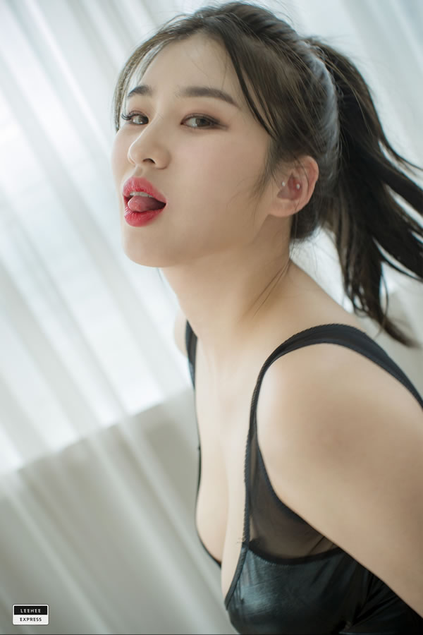火辣美女黑色连体衣上演烈焰红唇诱惑