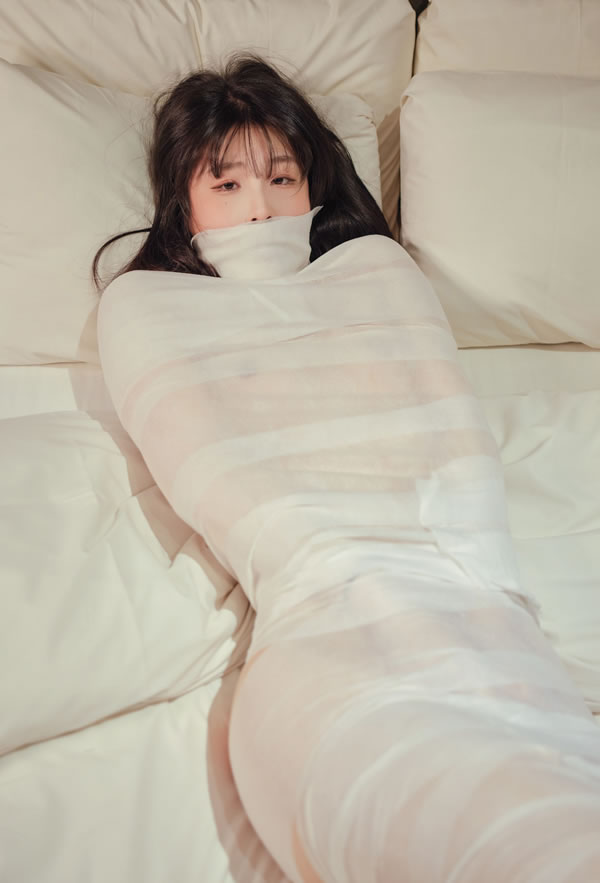 白色条纹肉丝美女Eunha白沙发福利图