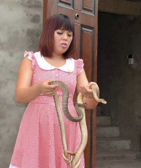 实拍85后女汉子周红梅抓蛇就像抓人民币视频