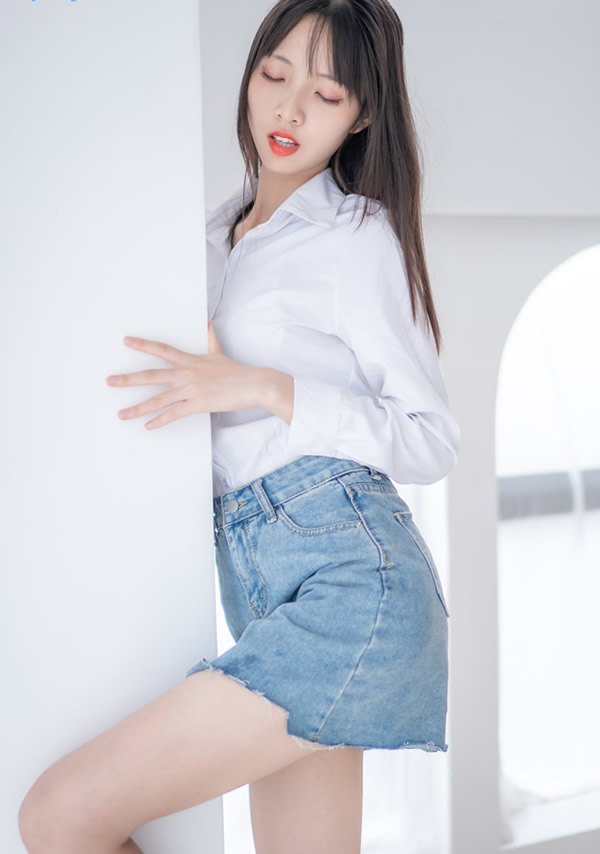 嫩模西瓜少女经典白衬衣牛仔短裙尺度图集