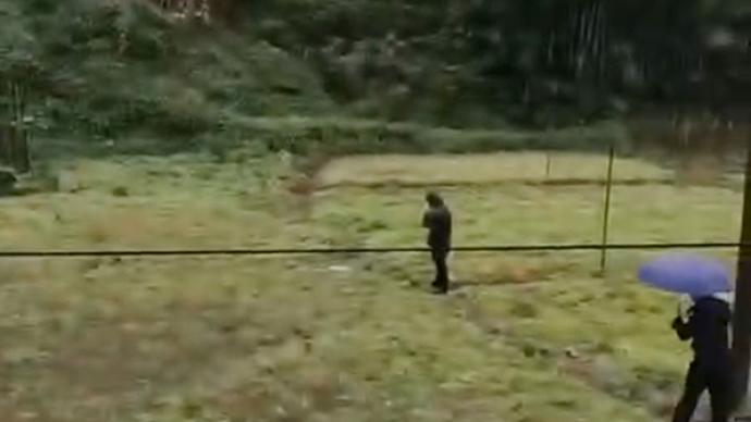 40分钟后,派出所民警赶到村里,由陈柱昌带去确定了“铁皮”的位置。随后,民警将水田封锁起来。直到这时,陈柱昌才想起来用手机拍个视频。不过,陈柱昌拍摄的地方离“铁皮”所在的位置较远,无法看清这块“铁皮”的细节。