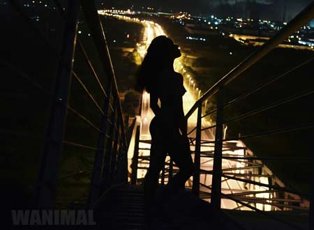 这3张艺术照都在晚上拍摄,拍摄地点为白露大桥拱顶处,前景是一名赤身裸体的女模特,背景是灯火通明的北外环路以及烟雾升腾的柳钢柳化厂区。