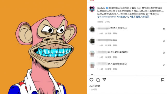 愚人节这天,周杰伦在社交媒体上发文称自己的NFT被盗了,而且强调不是开玩笑!引发众人关注。