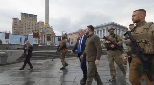 随后,约翰逊在社交平台“照片墙”上公布了两人在基辅巡街的视频,画面中大批全副武装的军人高度戒备,寸步不离进行保护。当天,在会谈结束后,约翰逊表示,英国将向乌克兰提供120辆装甲车和新型反舰导弹系统。