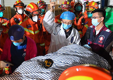 3日4时10分许,医务人员进入搜救现场评估获救女子生命体征。约5分钟后,获救女子被抬出事故现场。“和她交流,能有快速的反应,证明基本的神志和生命体征是正常的。”现场一名来自湘雅附三医院的医务人员告诉记者。