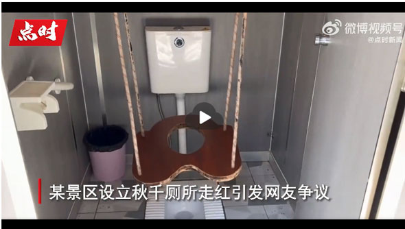据@点时新闻 消息,5月5日,重庆市,某景区设立秋千厕所走红引发热议。据设计师回应:因景区需要新增公共卫生间,为符合娱乐文创性,考虑使用登高,镜像,海洋及秋千等创意思路。当时只是想到趣味性,考虑不周。面对网友的质疑与建议,已连夜拆除秋千厕所。