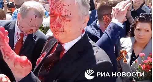 俄罗斯驻波兰大使被泼红色染料,图源:俄新社视频截图
