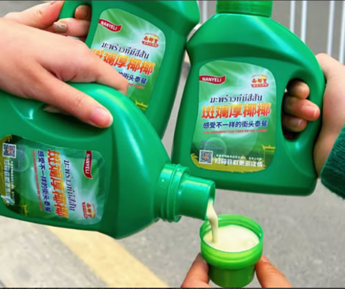 近日,江苏省南京市某泰式餐饮店的椰奶饮品引发网络争议,该奶茶外包装看似是洗衣液,实则内部装着椰奶饮品。有网友质疑,这种包装会不会误导孩子,增加儿童误食家中洗衣液的风险?