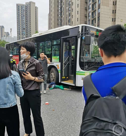 现场一段持续9秒的视频显示,受伤学生趴在地面,身体未见动静。公交车则横跨斑马线。