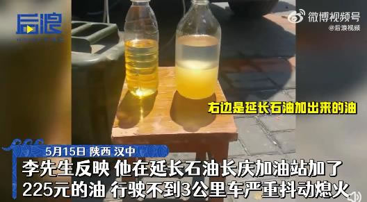 网传视频显示,有车主称:“在延长加油站加油,最起码有20辆车加油,走了不到1公里全部熄火。”视频中,加油站上有“延长加油”的标志。
