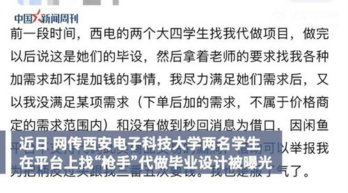原标题:两学生涉嫌找人有偿代做毕业设计,西安电子科技大学:严肃处理