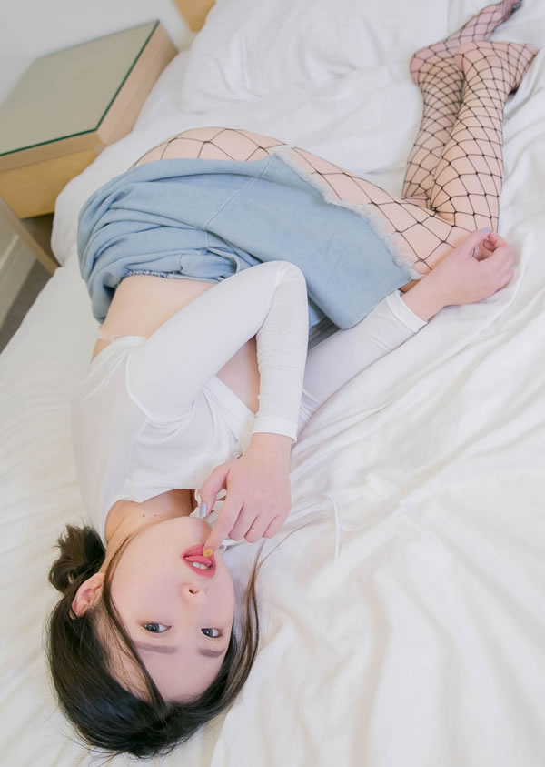 丰润美女黏黏白衣牛仔裙网格无圣光图集2
