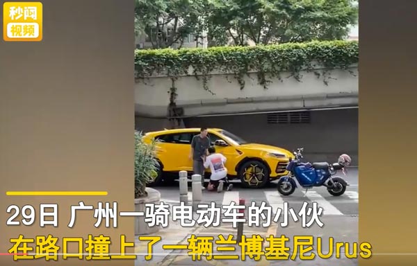 原标题:广州小伙骑车撞伤兰博基尼下跪哭求,车主好心放过,小伙高调炫耀