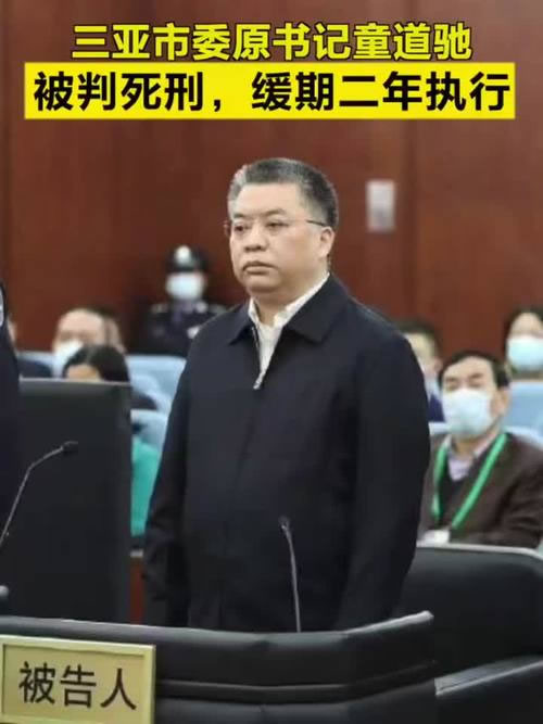 2022年6月2日上午,广东省深圳市中级人民法院一审公开宣判中共海南省委原常委、三亚市委原书记童道驰受贿、内幕交易一案,对被告人童道驰以受贿罪判处死刑,缓期二年执行,剥夺政治权利终身,并处没收个人全部财产,以内幕交易罪判处有期徒刑五年,并处罚金人民币四百万元,决定执行死刑,缓期二年执行,剥夺政治权利终身,并处没收个人全部财产;对童道驰受贿、内幕交易所得财物及其孳息均予以追缴,上缴国库。童道驰当庭表示服从法院判决,不上诉。