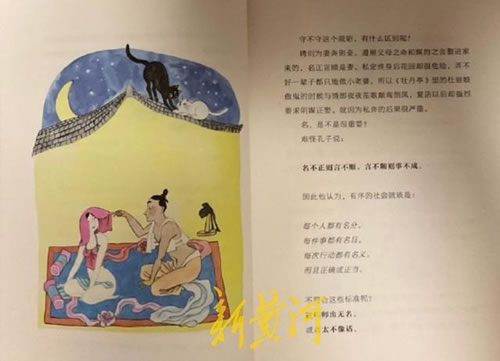 此事曝光后,有网友认为,解读中华传统文化方式多元,这种绘画风格只是调侃,并无恶意,应该包容。也有网友反对这种观点:这些插图不只是戏说,明明是打 " 荤段子 " 的擦边球。" 我是家长,坚决反对这种插图。"