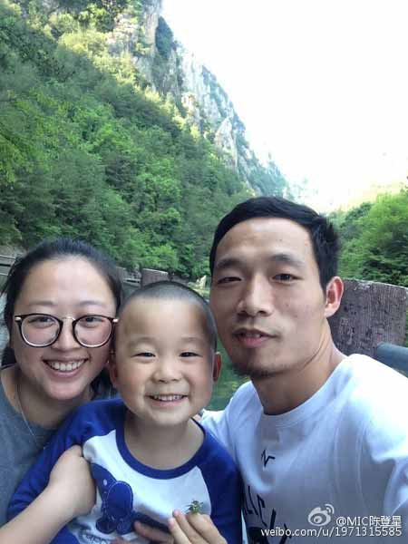 陈登星高中时专业练跳远,可总是逃训去打篮球,直到准备高考体育单招的考试,才认真练了四个月,成绩是7.15米。凭借着运动天赋和跳远练出来的弹跳力,陈登星在篮球场上也慢慢有所作为,尤其是令常人望而却步的扣篮。仔细看陈登星的扣篮动作,会发现他是个左撇子,这在扣篮界并不常见,他笑着说:“其实我打球是用右手的,不过以前跳远嘛,习惯了右脚起跳,扣篮时要是还用右手,不就同手同脚了嘛……”陈登星一家三口照片其乐融融