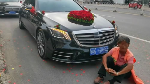 原标题:接亲礼花散落一地,环卫工拦婚车不让走!目击者:接亲人最后扫干净了