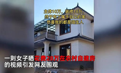 女子表示:自己在外打工十年存下28万,让表哥帮忙修建的房子,表哥称建房主体花了10万,装修花了18万,女子看后又惊又喜,称对于建房子的事情不是很懂,不知道28万是不是符合市场行情,对此网友议论纷纷。