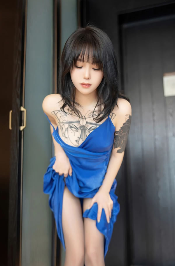 清新小美女奶瓶一袭宝蓝长裙肉丝优雅动人