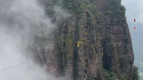 视频中,该演员身着孙悟空服装,顺着山间的钢索,在云雾中不断翻着跟头,让人大开眼界。