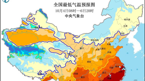 此次寒潮蓝色预警显示,受强冷空气影响,预计10月4日08时至10月6日20时,西北地区东南部、华北南部、黄淮、江淮、江汉、西南地区东部和江南大部等地将先后降温6~10℃,其中,黄淮南部、江淮、江汉和江南北部等地部分地区降温12~16℃,局地降温幅度可达18℃以上。
