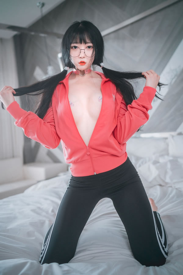 穿粉红运动衣的Aram双马尾居家诱惑图集