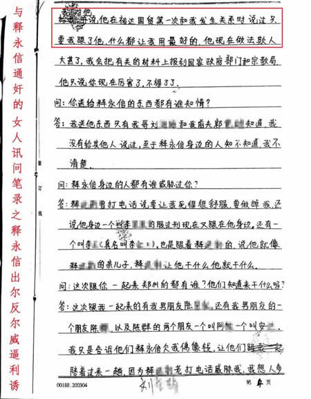 中国经济网消息:【释正义曝释永信与女子通奸公安笔录 发生关系一二十次并致其怀孕】释正义最新曝光了释永信与女子通奸的公安笔录。据笔录中内容,释永信以帮忙搞定佛像模具并让他过上好生活为由诱导女子"跟了他",前后在香港、深圳、郑州等地发生性关系一二十次并致其怀孕。该笔录真伪待证。