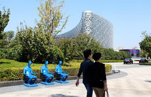 有网友在论坛上爆出,离苏州东方之门数公里远的金鸡湖畔有排造型独特的椅子,蓝色的人形椅身像是一个屈腿坐着的“裸女”,该网友戏言:坐上去就像坐在女子怀里。有网友表示,这样的设计很“前卫”。但不少游客却认为人形椅看着不舒服,有不尊重女性之嫌。