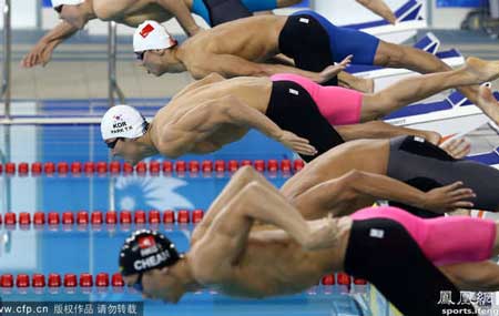 男子100米自由泳相当于田径的男子100米飞人大战,比赛精彩刺激,观赏性强、关注度高。如果说百米飞人大战是黑人运动员的天下,百米飞鱼大战就是白人运动员的地盘,这从人种学里能找到依据,本文不再赘述。总之,黄种人要想站在百米飞人大战和百米飞鱼大战的世界大赛决赛赛场谈何容易!
