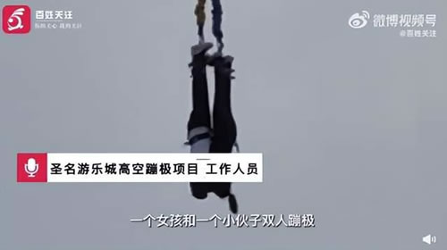 (原标题:情侣蹦极倒挂滞留半空 游乐城称秀恩爱拒绝上来 网友:拿自己的生命如此儿戏!)