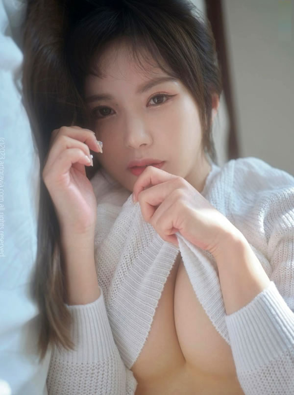 温柔美女Yulbi白色短针织衣JK无圣光写真