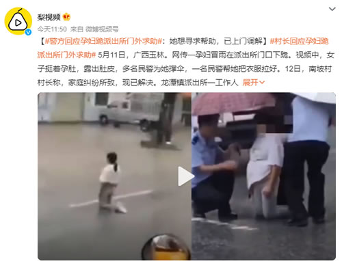 原标题:孕妇冒雨跪派出所门口 警方回应:因家庭纠纷寻求帮助 现已解决