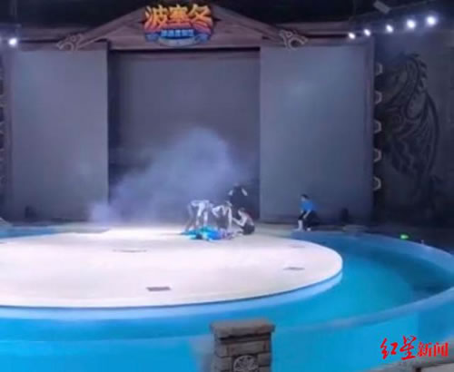 5月12日,有网络视频显示,哈尔滨波塞冬旅游度假区内的马戏剧场,2名杂技演员在表演中疑似因绳索断裂从半空中坠落,倒地不起。随后,有工作人员冲上舞台处理。