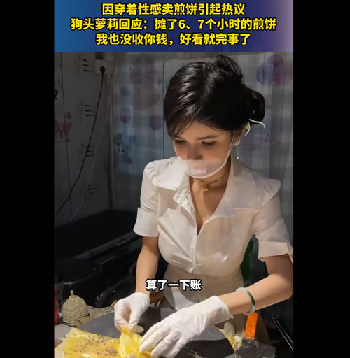 而对于一些网友对她穿着的质疑,“狗头萝莉”也坦然表示,“我很清楚我的饼不好吃,大家买我的煎饼都是因为喜欢我。”随后,该网友删除了相关评论。