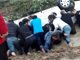 原标题:轿车翻路边水沟,众人下河掀车救人