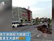 实拍杭州一路口突发路面塌方 系一个月内第二次